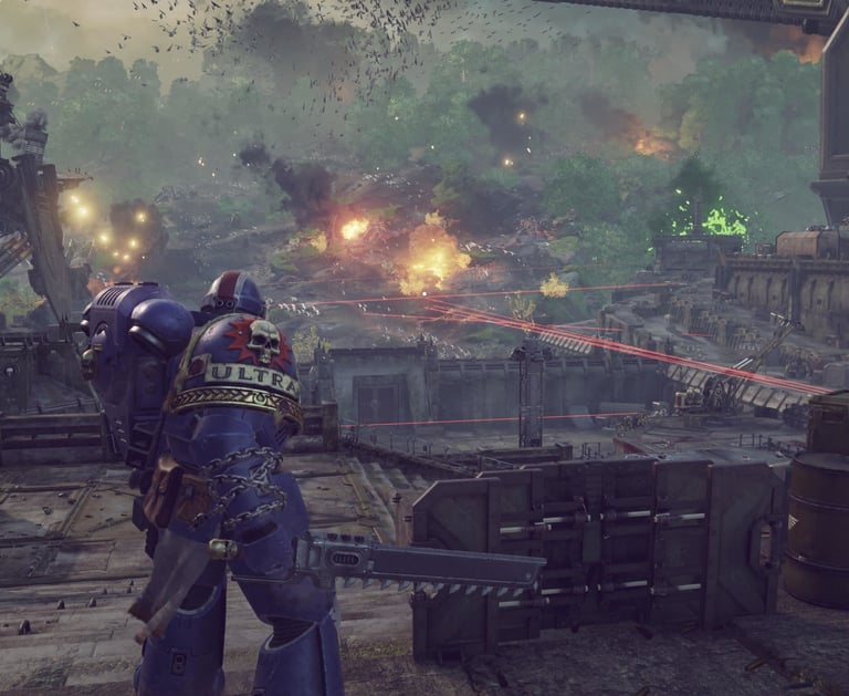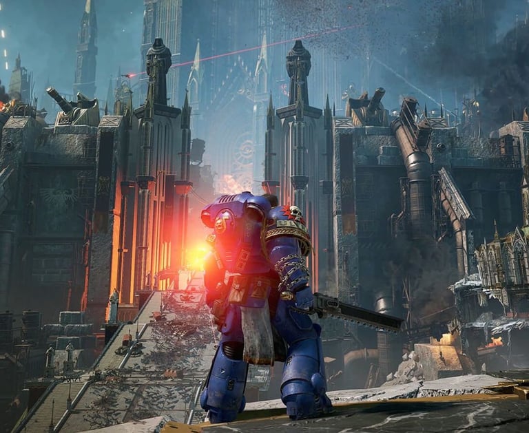 Space Marine 2 überzeugt optisch durch riesige, detaillierte Schlachtfelder, düstere Kathedralen und dynamische Lichteffekte. Explosionen, Partikeleffekte und Gegneranimationen wirken flüssig und intensiv.